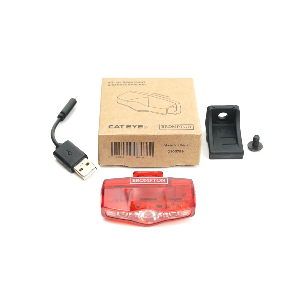 Luz trasera de asiento Brompton CatEye VIZ150 recargable por USB (incluye soporte de montaje y cable de recarga).