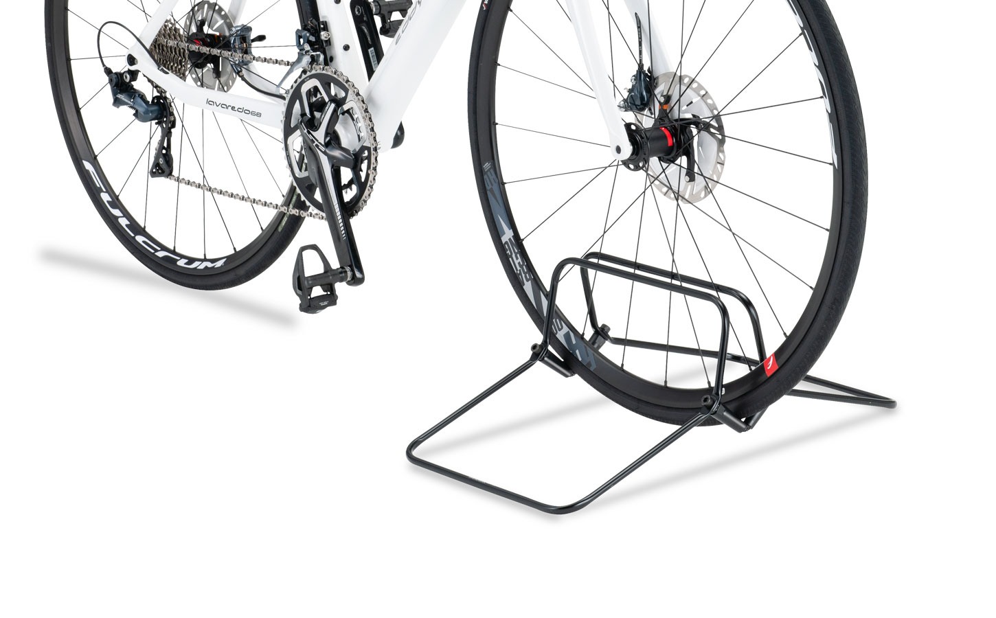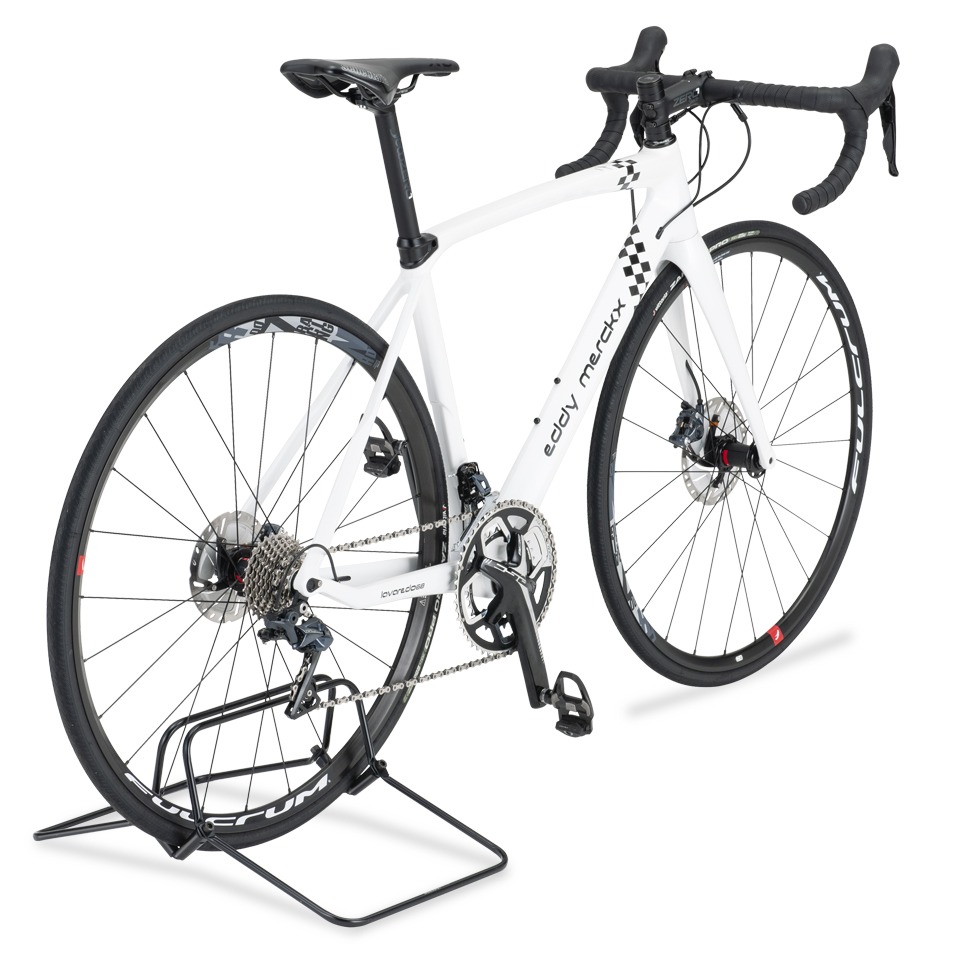 Simplemente inserte la rueda entre el cuadro del DSX-2M para mantener la bicicleta en posición vertical.