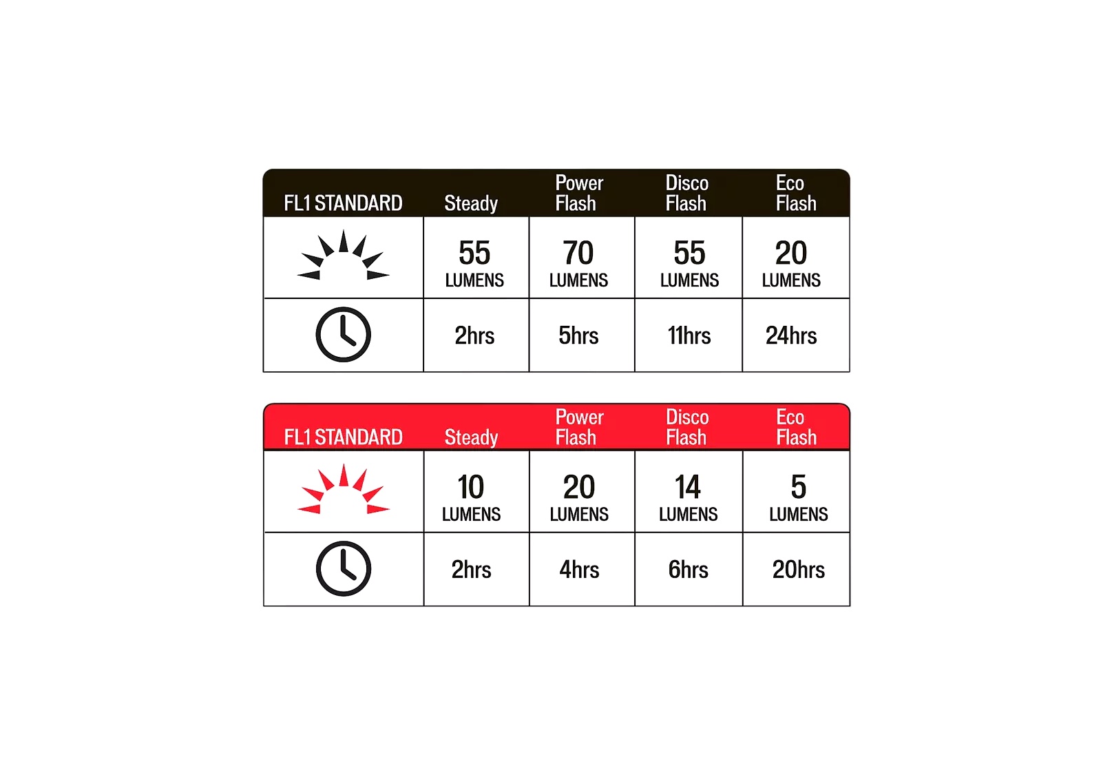 Red Eco Flash mode: 5 lumens durante 20:00 horas