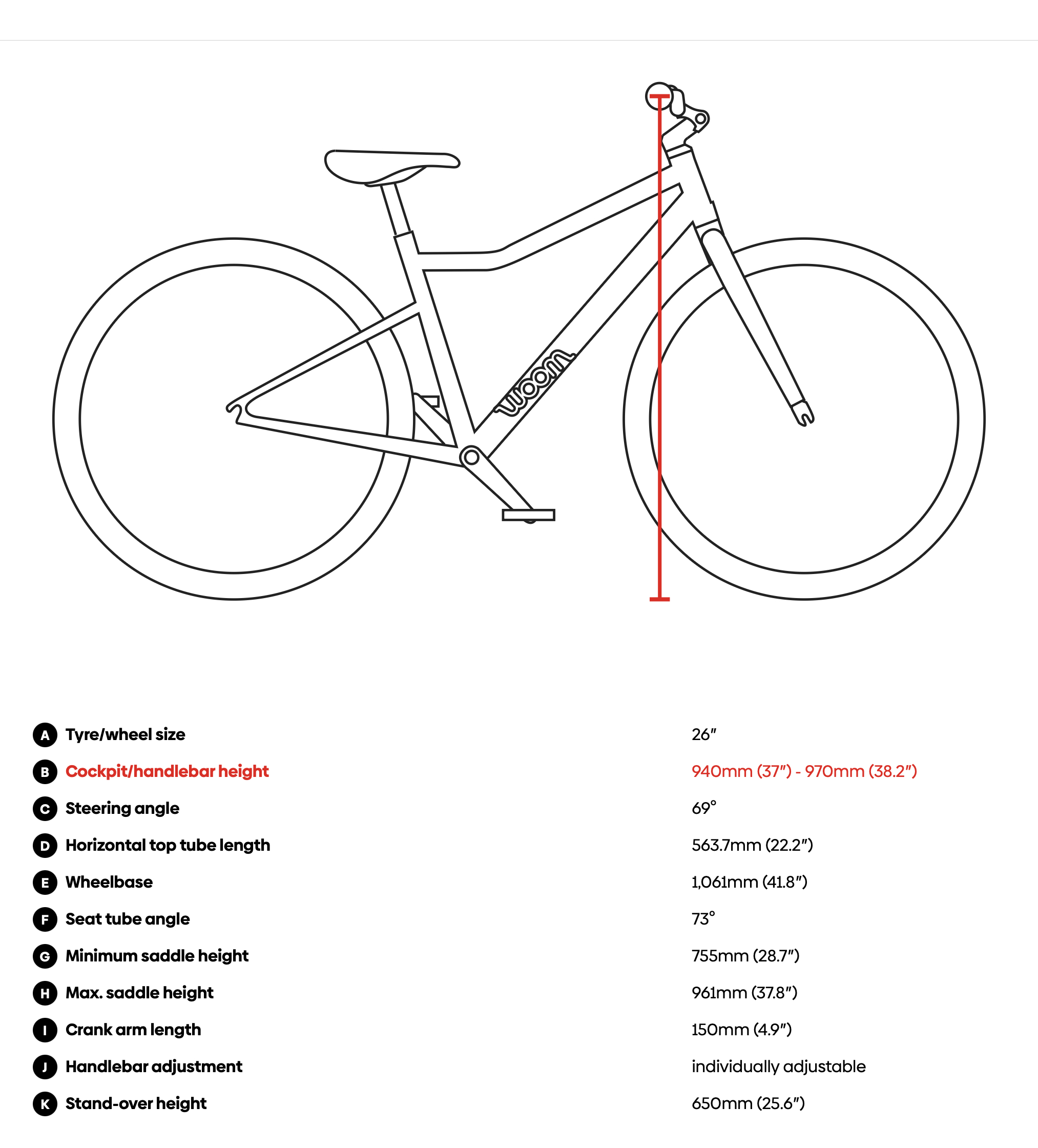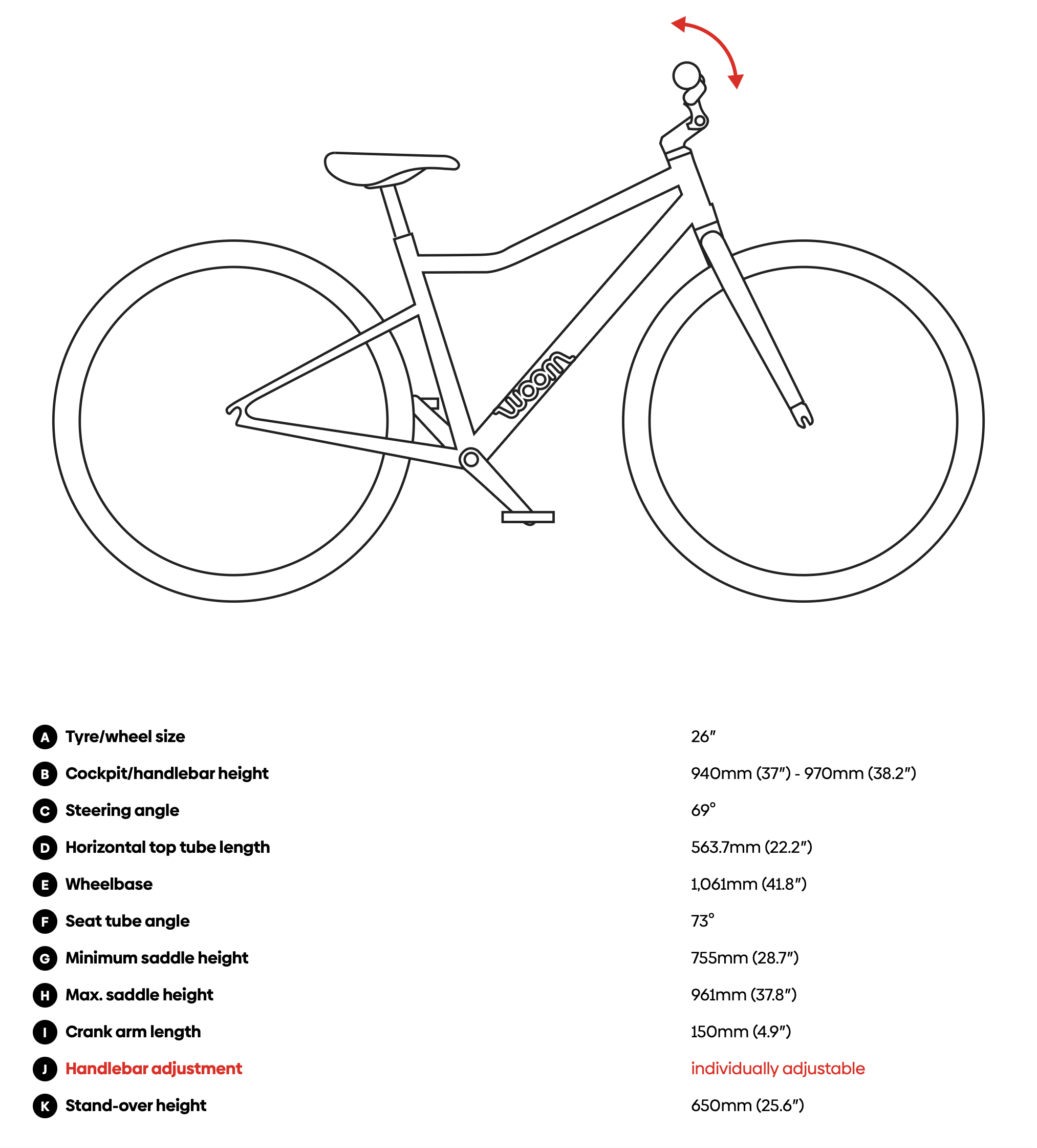 El práctico marcado ABC facilita el ajuste del manillar a la altura del sillín