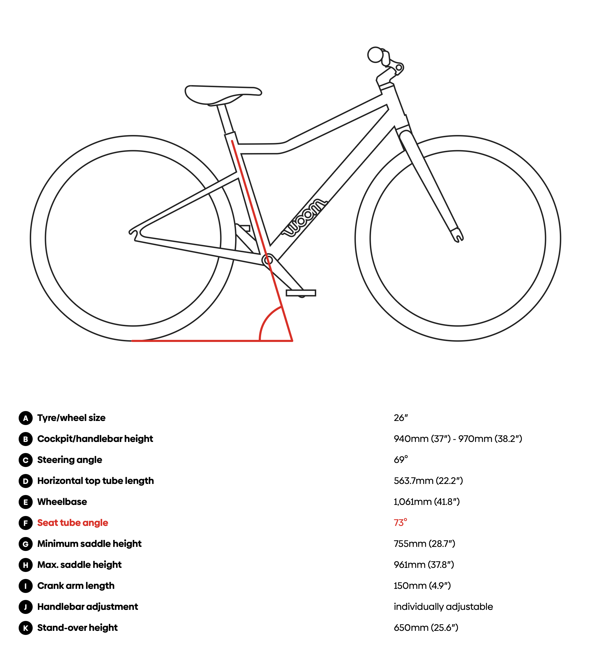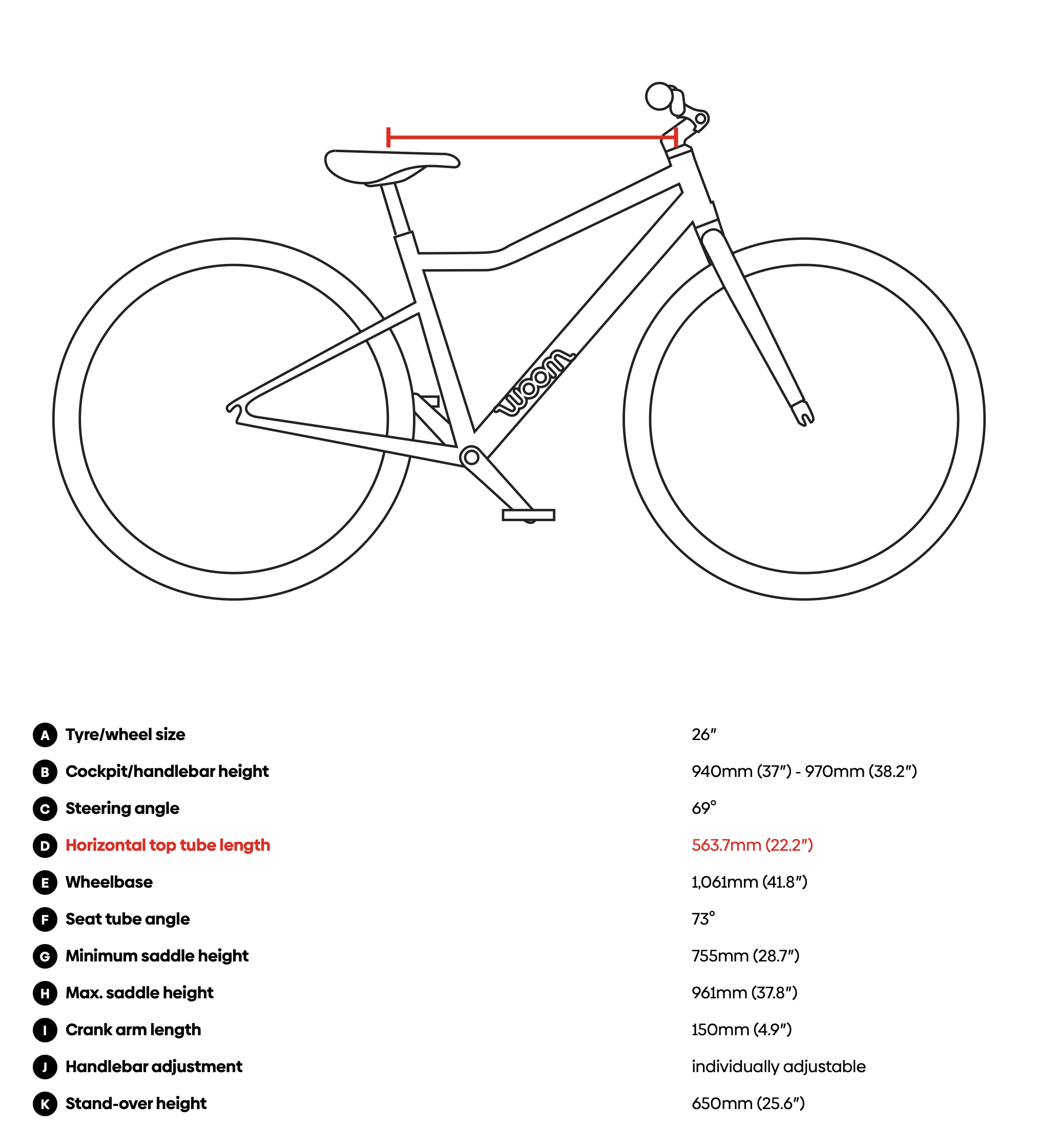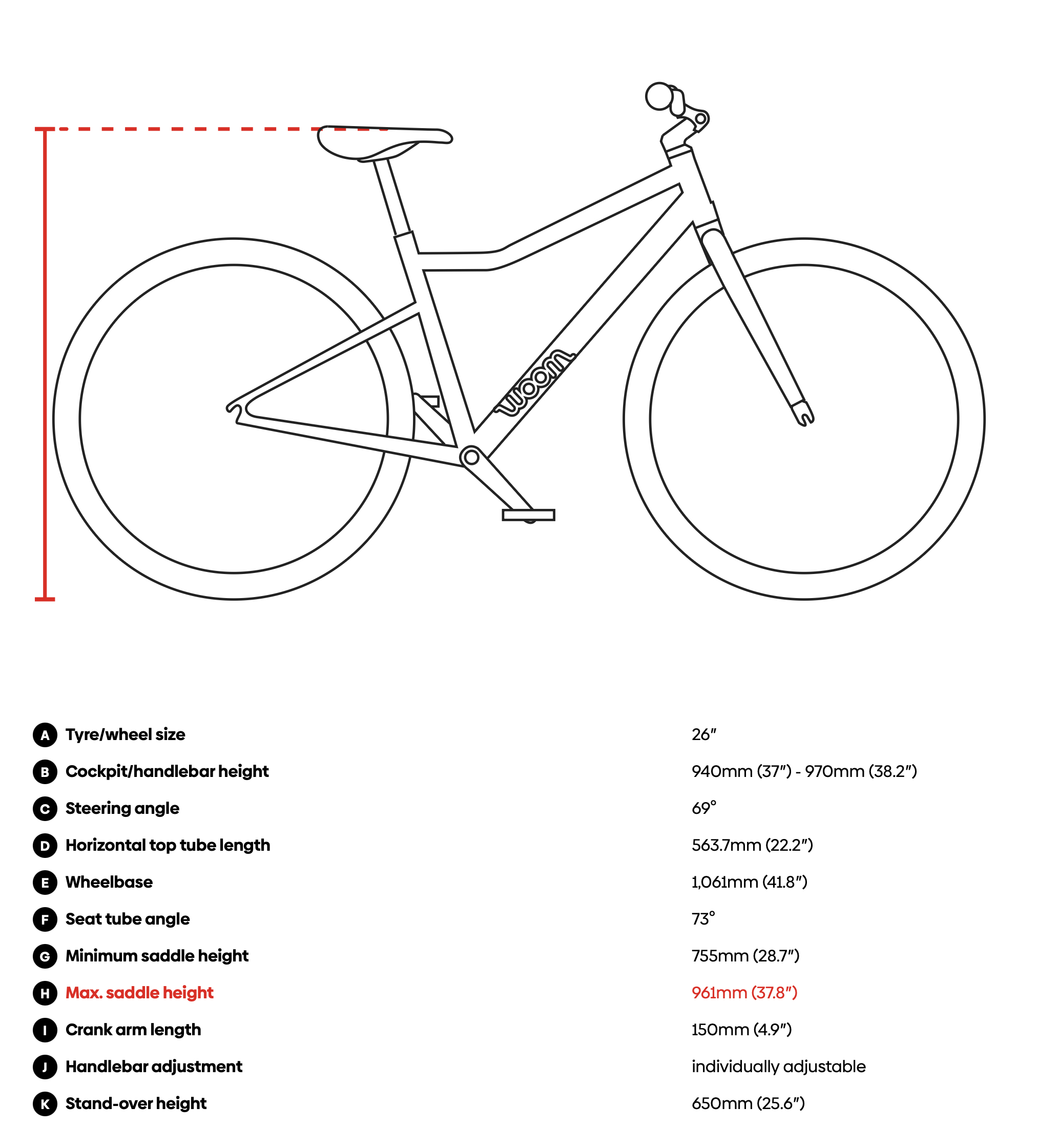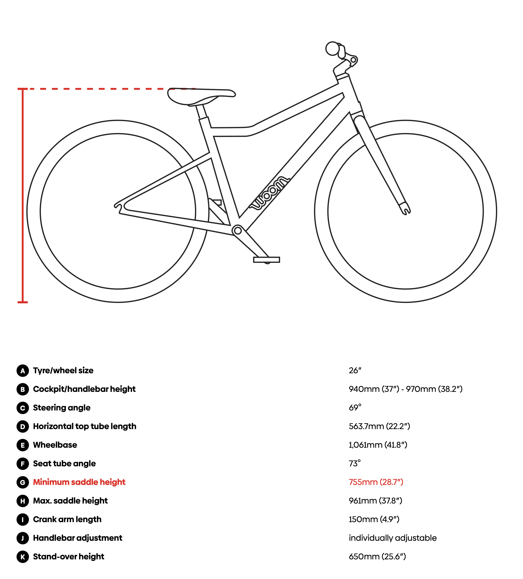 El práctico marcado ABC facilita el ajuste de la altura del sillín en relación con el manillar/potencia