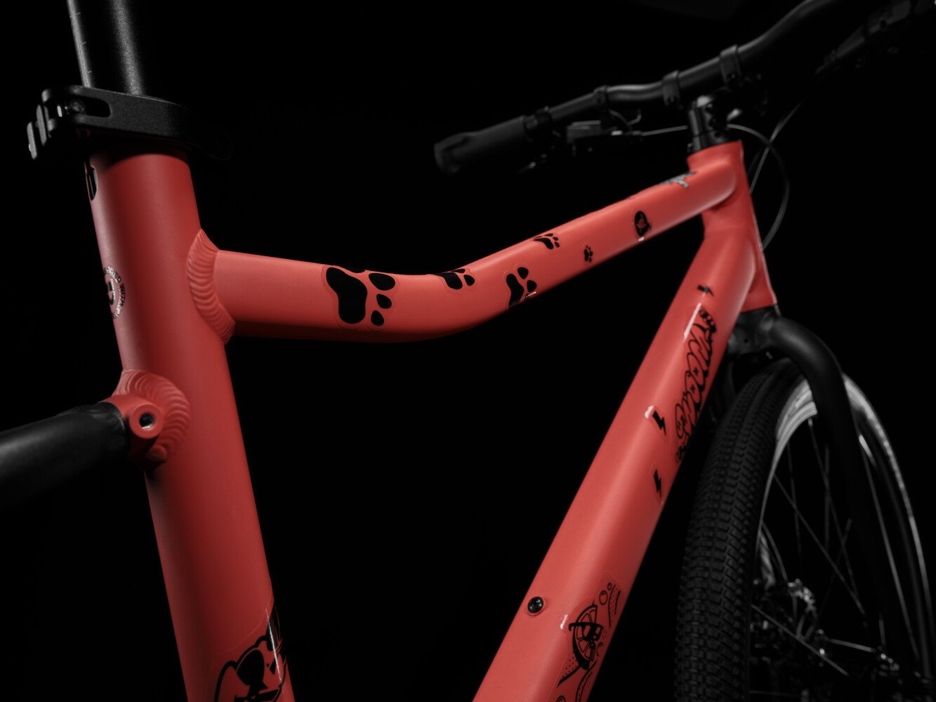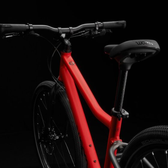 Geometría deportiva específica para niños con un ligero pliegue en el tubo superior y un perfil angular para una conducción cómoda y un estilo que destaca.