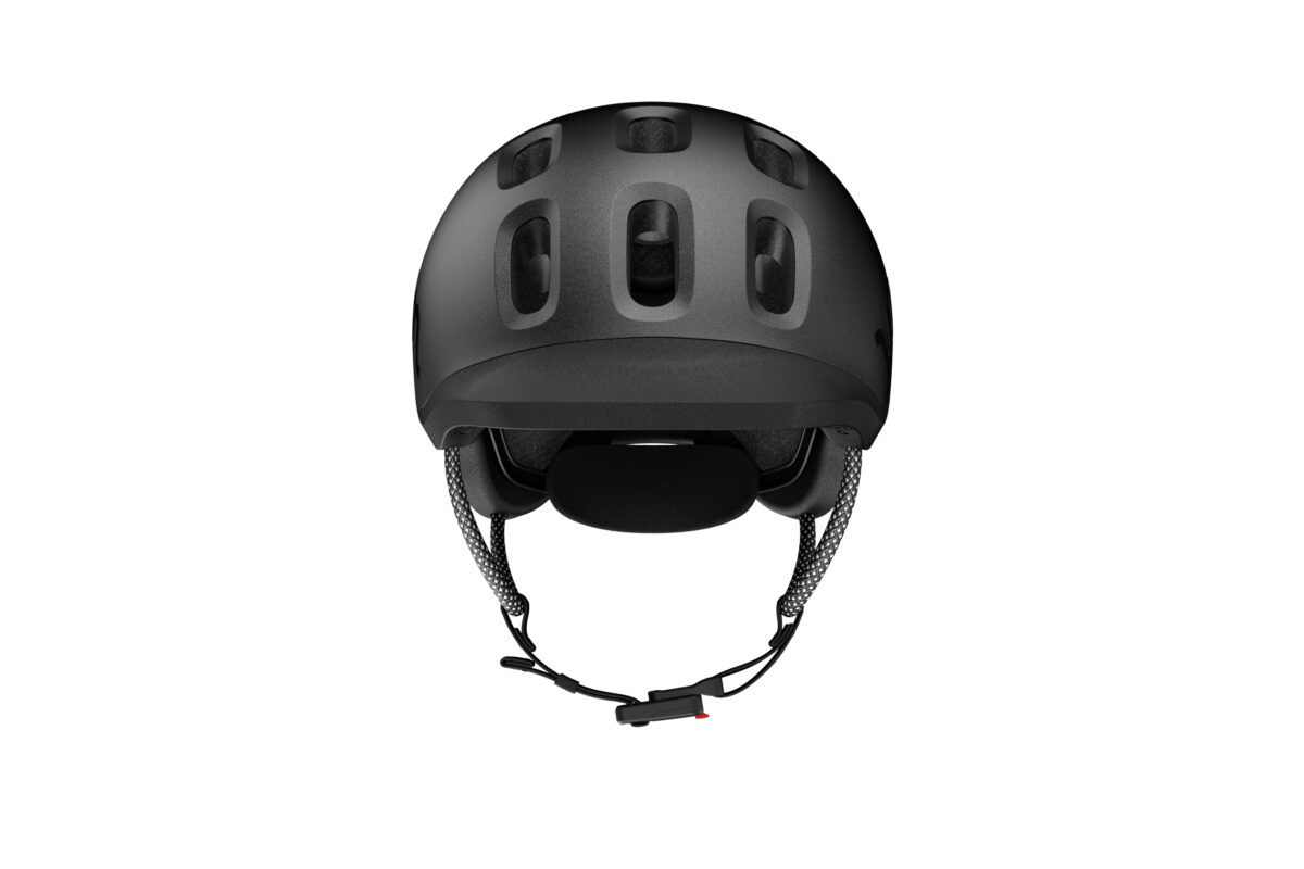 Si el casco le queda demasiado apretado al ponérselo, empieza girando la rueda de ajuste de talla para aflojar el sistema de ajuste interior. Asegúrate de que el casco esté nivelado y cubra bien la cabeza. El borde frontal del casco debe quedar aproximadamente 1 cm por encima de las cejas. Gira la rueda de ajuste de talla para apretar la anilla interior hasta que el casco quede bien ajustado. No debe tambalearse al mover la cabeza suavemente. Para terminar, cierra el cierre de la correa de la barbilla. Por cierto… Al ponerte el casco por primera vez, asegúrate de que la correa de la barbilla quede bien ajustada al cuello, comprobando que no esté demasiado suelta.