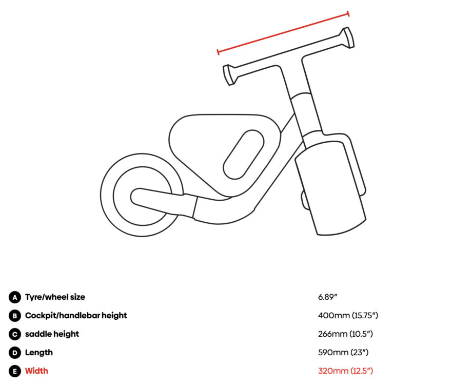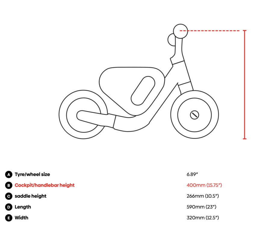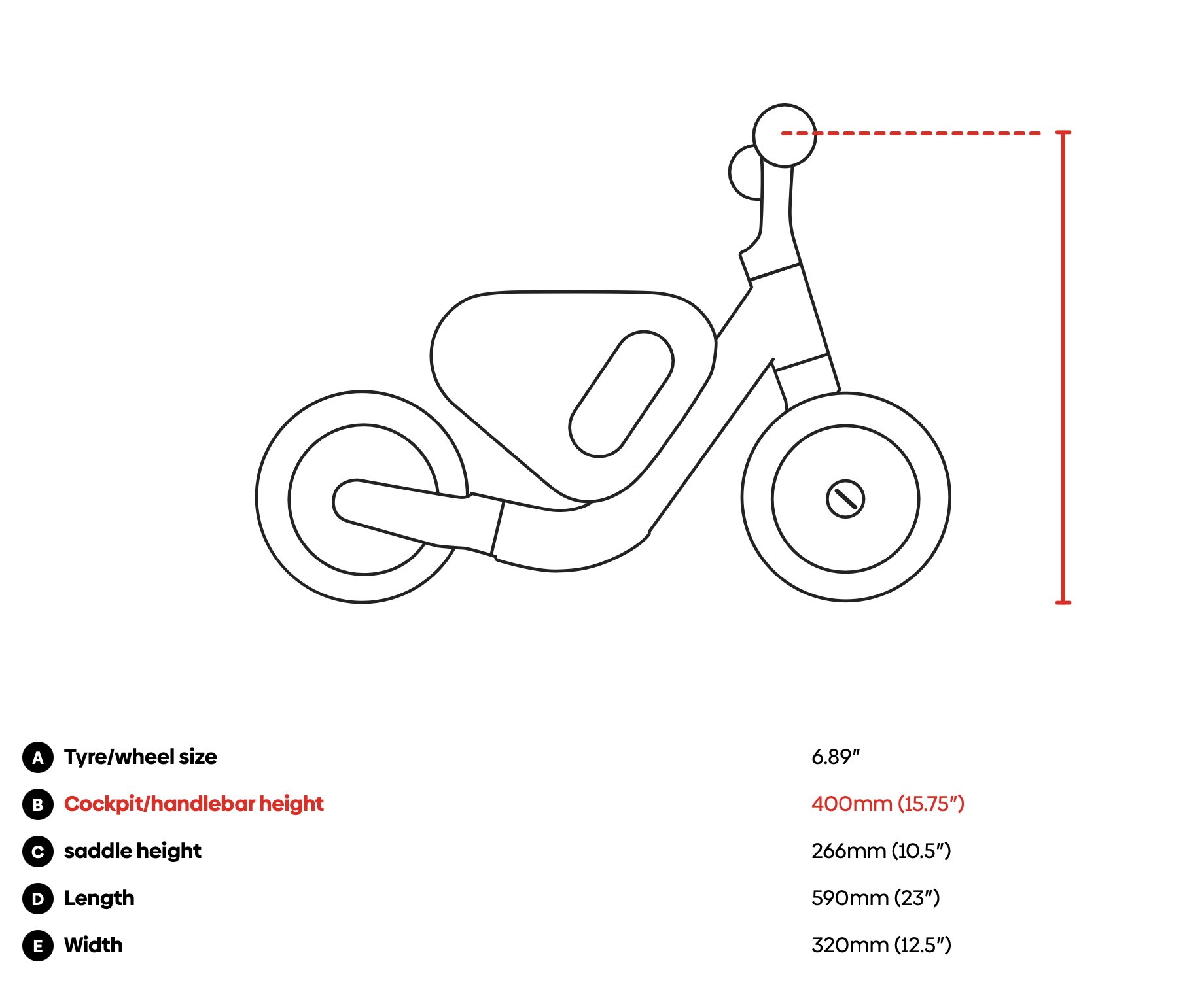 • Capacidad para alcanzar el manillar con los brazos ligeramente flexionados y los pies tocando el suelo al sentarse en la Woom WOW